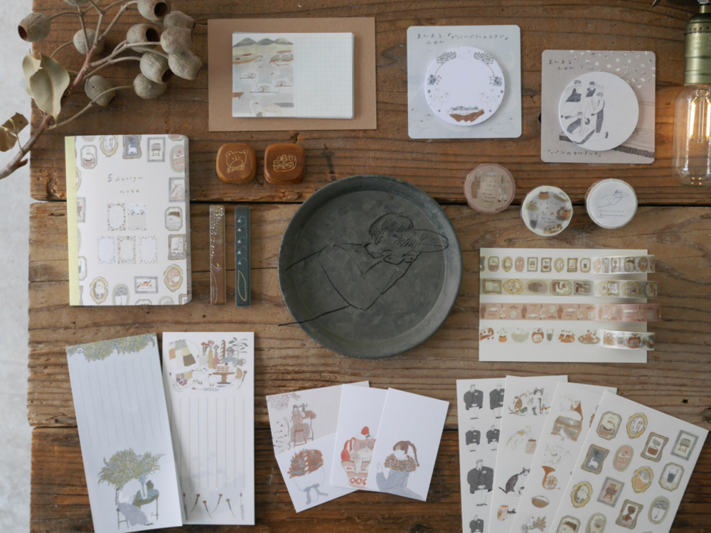 ひとつひとつの色、形、模様がちがう一点物となっており、たくさんあるものの中からひとつのお気に入りを見つけてほしいというコンセプトで制作しています。模様は自分で描いたものを押し、自然に溶け込む色、錆や黴のような色、季節にあわせた色、その日の気分など、感じたままに絵を描くように着彩します。眺めて、迷って、選ぶ時間を楽しんでいただけたら嬉しいです。