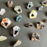 いろいろな色、形、模様の陶の装身具を主に制作。自身で描いた模様を押し、自然に溶け込む色、錆や黴のような色、季節にあわせた色、その日の気分など、感じたままに絵を描くように色をつけています。色も形も模様もちがう、たくさんのものの中からお気に入りの一点を見つけてください。