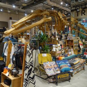 A&Fカントリーささしまライブ店|デッキに休憩用のテントを張ってくれます。バッグ・アパレル・キャンプギア・小物雑貨など、世界中から集めた製品を取り扱うA&Fカントリー。店舗を浮遊する、木製のクジラの骨格標本が目印のアウトドアライフストアです。アウトドア派もインドア派も大歓迎!グローバルゲート1Fでお待ちしております!
