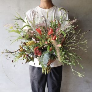 今回は、信州片桐花卉園さんの産地直送花屋『添える』さんのフローリストを講師としてお招きし、特別なワークショップを開催します。季節とともに草花も秋へと衣替えをはじめます。紅葉も始まるバリエーション豊かなカタギリーフと、旬を迎えたラペイロージャなどをふんだんに使って、静かな華やぎのある花束を一緒に作りませんか。