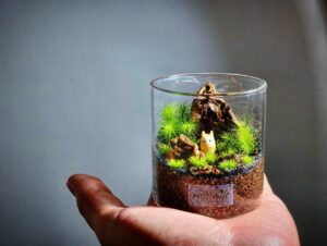 人気の苔テラリウムアーティスト mossmileさんによるワークショップです。苔や石、化粧砂、フィギュアなどを使用してガラス容器の中に自分だけの特別な苔の世界を制作してみましょう。