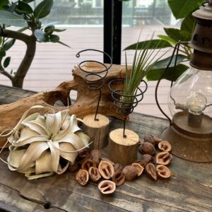 空気中の水分で育つ不思議な植物「エアプランツ」。そんなエアプランツをもっと素敵に飾れる“オリジナルスタンド”を作ってみませんか。素材の組み合わせやデザインは自由自在!世界に一つだけのグリーンインテリアが完成します。エアプランツもセットでご用意しておりますので、その日からすぐに飾っていただけます。garageスタッフが丁寧にサポートしますので、モノづくり初心者の方も大歓迎!