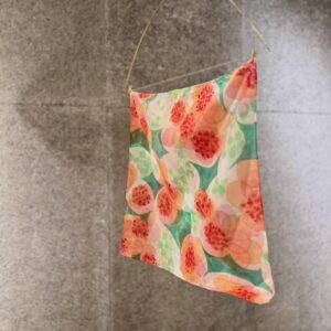 スカーフとしてちょうどいいサイズ感の染物は、もちろん販売もしております。また作品一部を利用したブローチなどもご用意しております。ぜひ手に取ってお試しください。