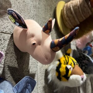 この動物たちは、作家の花村一晃さんがひとつひとつ生地選びからこだわって作ったもの。同じ動物でも、生地が違ったり目の表情が違ったりと個性があるので、見ているだけでも笑顔になれます。