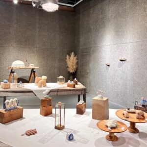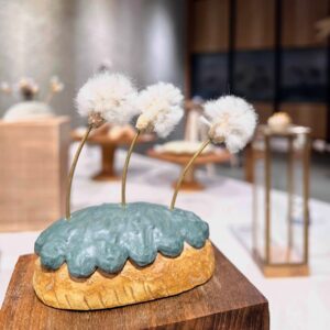 陶をメインの素材として、自分の心にフィットする心地よい形や色、素材を思いつくまま手を動かして自然と出来上がったような作品。
