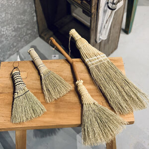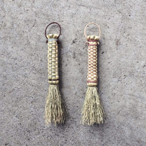 ホウキモロコシを編み束ねて、ミニサイズ(約14㎝)の箒作りの体験をします。編みの素材としてさまざまな天然染料で染めた綿糸などを使い、お好みの色味でまとめます。昔ながらの天然素材と伝統の手法で編みあげる箒を、自分の手で作って使ってみませんか。