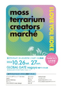 テラリウム、パルダリウム、盆栽、塊根植物を中心とした作品の販売及びワークショップの開催、また週末の10/26.27には、施設1Fアトリウムにてクリエーターズマルシェも開催。合わせてお楽しみください。