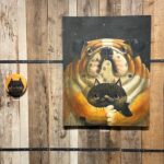 光を宿した美しい瞳でこちらを見つめる動物たちの人間らしい仕草に、ちょっぴりユーモアや哀愁を感じる作品が並びます。