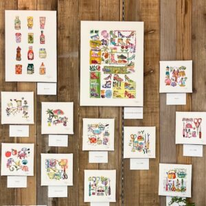 作品はすべてご購入後すぐにお持ち帰りいただけます。さらにタオルやキーホルダーなどグッズの販売もございます。