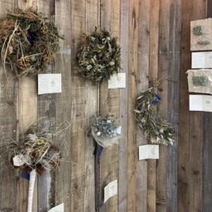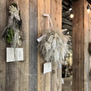 坂東さんの感性のままに、既成概念にとらわれず表現されたドライフラワー、アーティフィシャル、プリザーブドフラワーを使った作品たち。