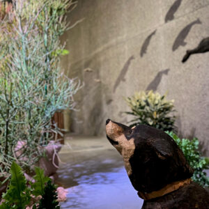 また、会場ではその光景の眺める犬の月くんの姿も。月くんの視線の先には何があるのでしょうか。会場内で唯一触れることのできる月くんに寄り添い、月くんの視点で展示を見るのも面白そうですね。