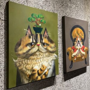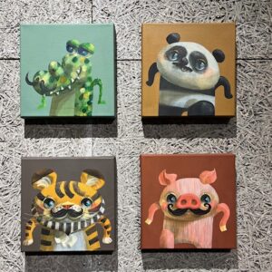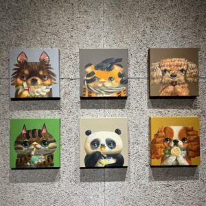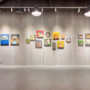 動物のカタチを借りてヒトの心情を描いている原田さん。今年もスペースいっぱいに、かわいい動物が並びます。