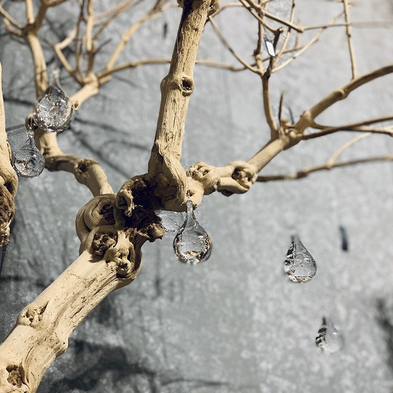 枝々から垂れ落ちる水の雫や春先に緩み始めた氷のような作品たちからは、まるで雪解けの野原のような瑞々しさを感じます。