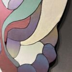 染められた自然の模様を利用するのではなく、その形、配色を表現するために緻密に計算し染め、長い長い行程を経て仕上げられています。