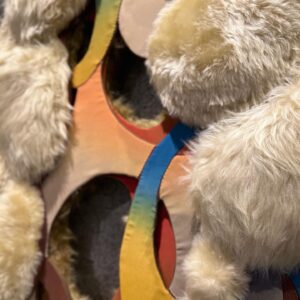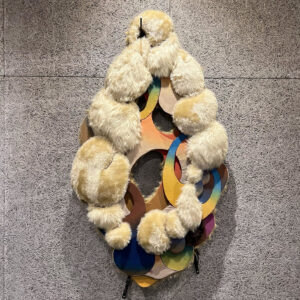 ここ数年で長年親しんできた日常が大きく揺るがされる出来事が続き、制作活動とそれ以外の日常の関係を見直すきっかけになった。気づいてみれば、切り離して考えていた二つの営みは切り離す必要などなく、どちらも私自身がその時その時の環境に影響されながら選んだ糸を右へ左へ編み込んだものなのだった。今という模様は目の前の過去を編み込んでできたものであり、見えない背後に続く未来という模様は必ず現時点での模様の影響を受ける。「記憶のスクラップ」は、目の前に広がった過去の模様を読み解くために始めたシリーズである。