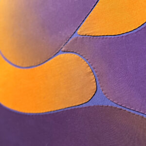 作品は布を染め、それを絵を描くように構成しています。染められた自然の模様を利用するのではなく、その絵を描くために、緻密に計算され染められた布を構成する工程は、作家にとってはキャンバスに絵の具の載せるよりも、その素材感や風合いがしっくりくるそう。ぜひ実物を近くでご覧いただきたい作品です。