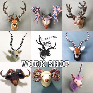 綿を詰めて縫い合わせる作業をしますが、あらかじめキットになっているので失敗することなく、立派なかわいいアニマルトロフィーが完成します。とても人気のワークショップですので、お早めのご予約をおススメします。