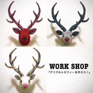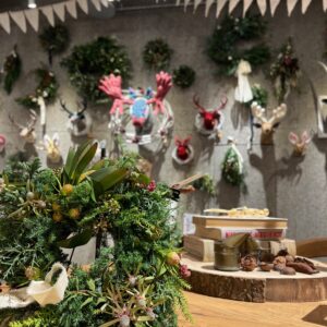 毎年恒例となっております。ハンドウンドステッチのアニマルトロフィーとgarageオリジナルリースやスワッグを、gareco の空間いっぱいに展示、販売をします。
