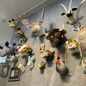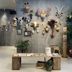 ドイツ・ハンブルグの滞在で、週末に行われるアンティークマーケットでみた動物の剥製やオールドテディベアに魅了されたことがきっかけで、アニマルトロフィーを作り始めたそうです。