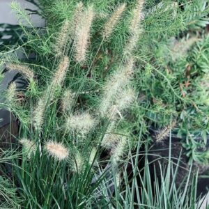 一方ペニセタムは、子猫のしっぽのような小ぶりの穂が愛らしいイネ科の植物です。お花が少ない晩夏から秋の時期に、群生した穂がお庭を賑やかにしてくれます。年間を通じてカラーリーフとしても重宝する存在です。