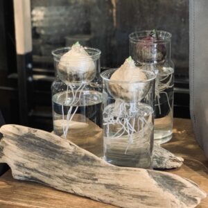 その後、球根から根が出るまでは球根の下部分が常に水に触れている状態に保ちます。球根が水に浸かりすぎてしまうと腐ってしまうので、注意が必要です。