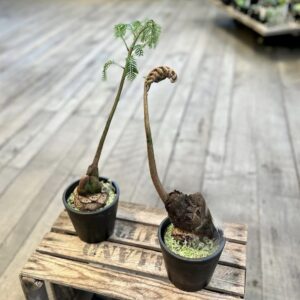 新芽はくるくると巻いたワラビのような姿で芽吹き、やがて手を広げるように葉が展開します。大きなものでは1枚の葉が6mを超えることもあるそうです。園芸店では小ぶりな株が多く出回りますが、大型株はとても希少です。が、garageでは過去に10号超えの大鉢を入荷したこともあるんですよ。