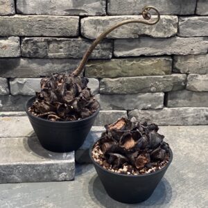 窓辺の賑やかな植物たちから少し離れた場所に鎮座するリュウビンタイ、その悠然と構える姿に心が痺れます。恐竜の時代に栄えたシダの生き残り、生きた化石ともいわれ、太古のロマンを感じるその佇まいと、黒褐色の塊茎の造形美は、和の器にもよく似合います。一度その魅力に触れたら、虜になること間違いなしです。