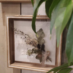 フレッシュな花束を贈る代わりに、少し小さめのドライフラワーのブーケをフレームに入れれば、いつまでもそのまま飾ることが出来て喜ばれそうです。
