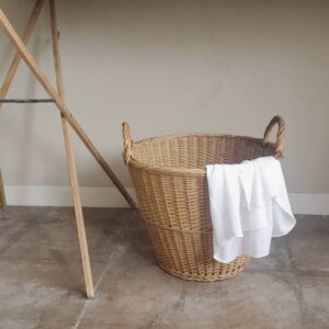 年代物のバスケットは、編み目の汚れや埃が特に気になる場合もあるかと思います。そんな時は、思い切って強めのシャワーをあてて汚れを落とします。それでも取れない場合は、ブラシなどを使って汚れを掻き出し、最後にもう一度シャワーをあてます。