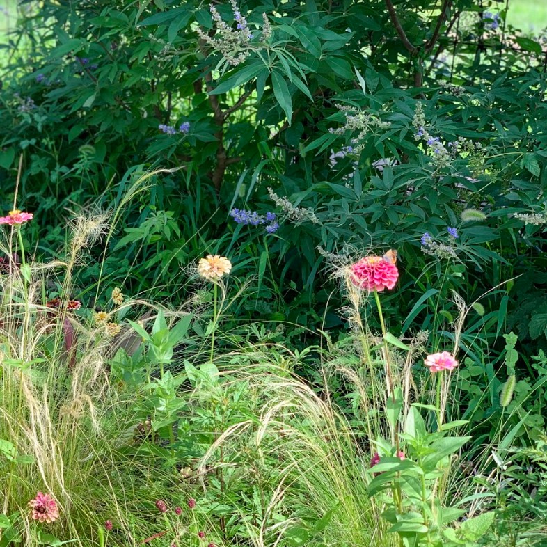 夏のお庭に忘れてならないのは、ブッドレア。こちらは小さな花を穂状につける低木植物で、夏の間途切れることなく次から次へと花を咲かせます。