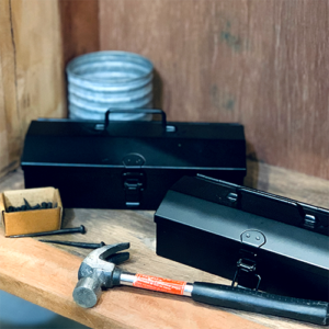 小さいボックスにはクギやネジなど細かいものをまとめて入れて、大きめのボックスにはペンチやドライバーなどの工具を入れます。僕は工具用途以外にも、ツールボックスを愛用しています。ひとつは薬や絆創膏をいれる救急箱に、もうひとつはデッサン用品を入れる画材箱として。