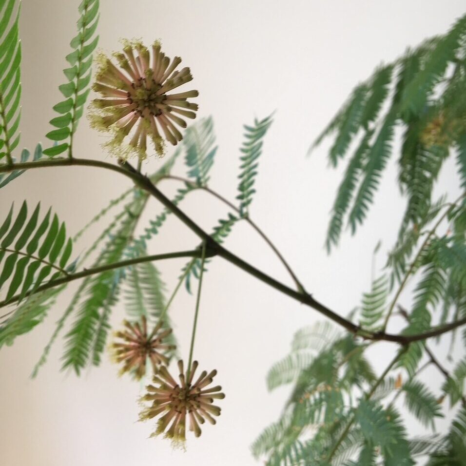 ネムノキという別名でも呼ばれる通り、夜になると葉を閉じて眠り、日が当たり始めると葉を開きます。その姿はとても愛くるしく、日々の変化が楽しめる観葉植物です。
