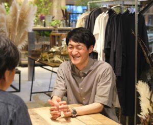 自分たちは全国いろいろなところでイベント出店をして、実際に生地を体感していただき、たくさんの人に生地の良さを知ってもらうことが喜びです。だから接客していても、僕なんかはずっと生地の説明をしてます。洋服を買うときって、こっちは似合う、これは似合わないとか言っている過程が醍醐味で、そういう時間が楽しいと思うんです。garageさんを見ていてもお客様とスタッフの方が、この植物はどう?とか、こちらの方が合いそうとか、一緒になって選んでいますよね。そうやって考えると業種は違えど、店頭で素材の持つ力を感じてもらい、それにスタッフが説明を加えて、共に暮らし育てることを提案しているgarageさんとは通ずるものがあるなって思います。そして、そういった部分をこれからも大切にしていきたいなと思っています。