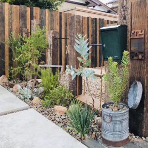 オージープランツなど個性的な植物をメインに、古材や石を効果的に使ったデザインが主流です。自然素材を使うことで、そのものの素材感や経年変化がお庭に味わいをもたらします。インテリアも扱う園芸店なので、植物にブロカントなどの雑貨を合わせ雰囲気をつくるのも得意です。