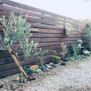 お庭の植栽でよく使うのは、ティーツリーです。葉の色味が種類豊富なので、お家の外観に合わせて品種を選びます。