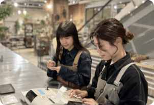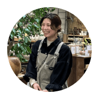 インテリアコーディネーターとして社会経験のあった吉田は、その経験を活かし、入社当初から即戦力となり店舗を支える存在となりました。店舗では植物とインテリアの組み合わせや、空間への植物の配置など、スキルを活かせる仕事もたくさんあります。植物については目下勉強中ですが、心地よい接客でお客様にも安心感を与えます。