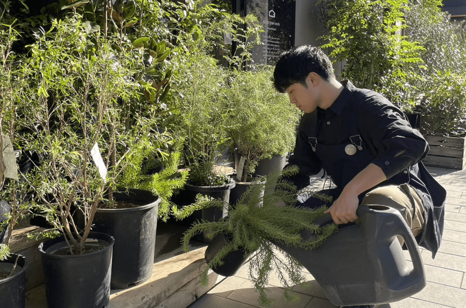 現在アルバイト3年目の瀧澤は、大学卒業後にはそのまま入社を希望しています。週に3日アルバイトをしながら、少しずつ植物のこと、接客のこと、また社会人としてのマナーを勉強中。正社員となった折りには、即戦力となれるように、アルバイトの間に様々なことを吸収してくれることを願っています。