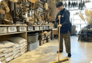 店内を整理しつつ、積極的にお客様にお声かけします。